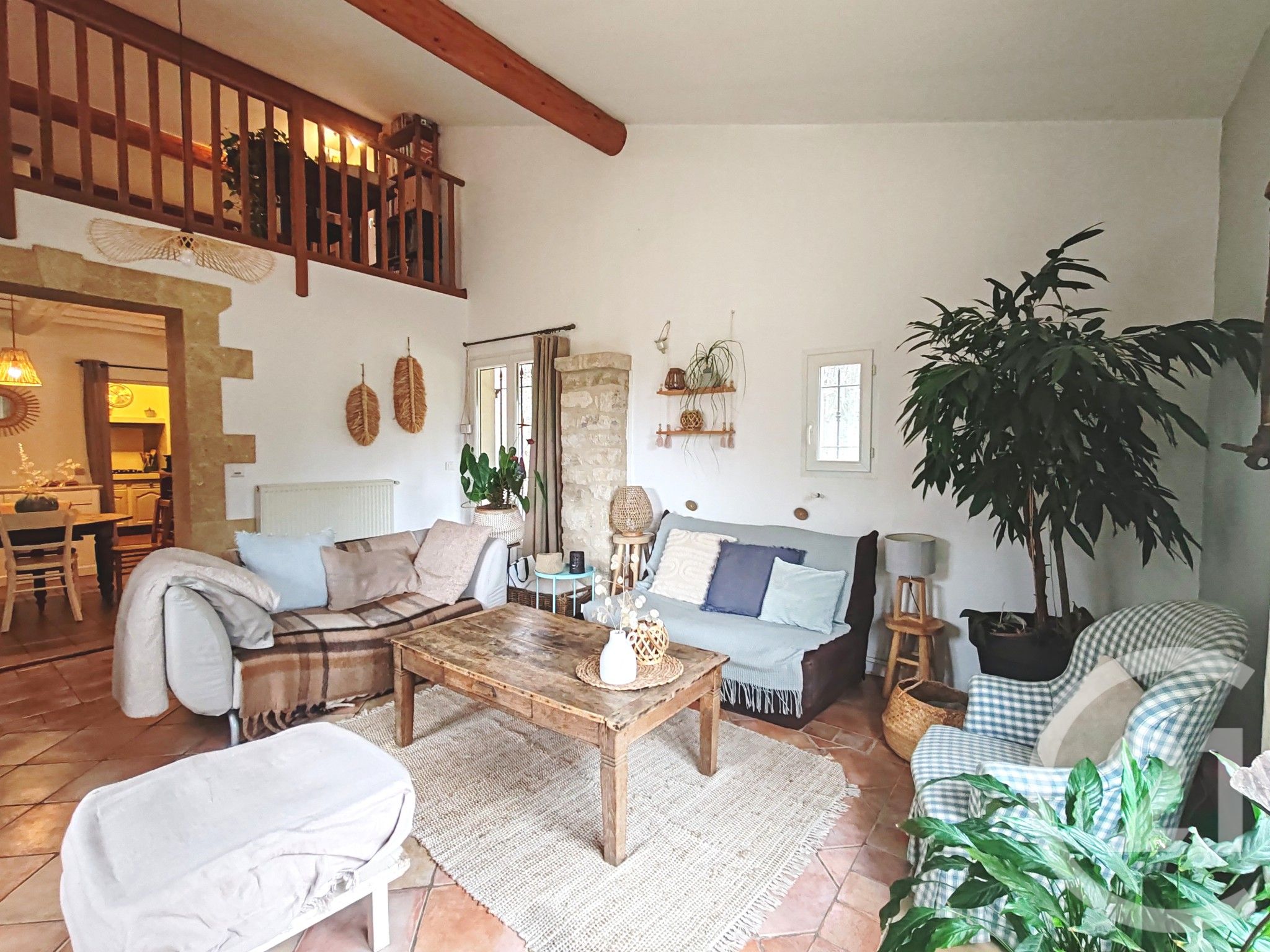 Vous bénéficierez également d'une mezzanine de 17m² au sol aménagée en coin bureau, idéale pour le télétravail ou un espace détente.